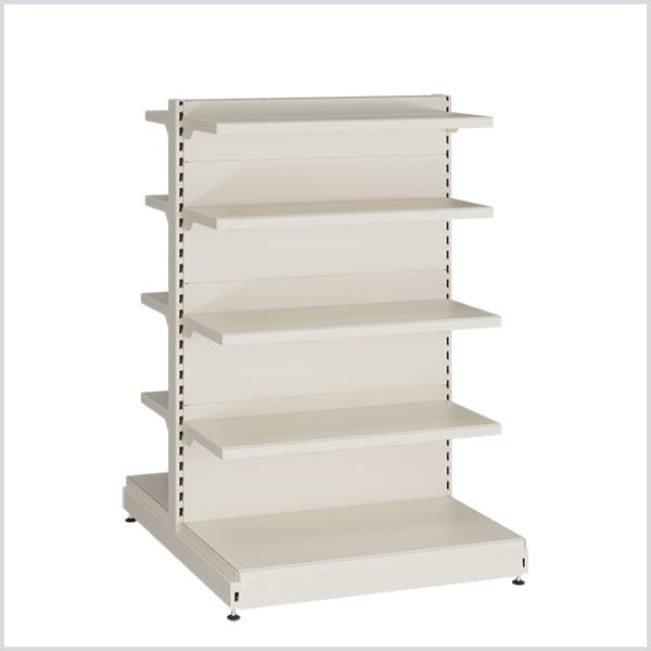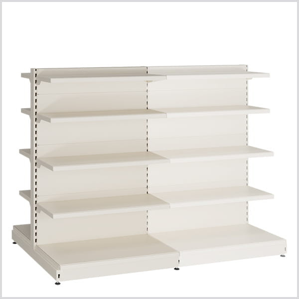 A kétoldalas polc (bolti gondola) élelmiszereket, háztartási vegyszereket, kozmetikumokat és lakberendezési cikkeket árusító üzletek számára tökéletes választás. 10 db különböző mélységű fém, megerősített polc (30, 40 és 50 centiméter) teszi lehetővé az áruk két oldalról történő megjelenítését.